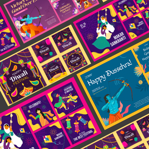 A full brand makeover: logo, intro video, business card, letter pad, plus 100 festival posts.